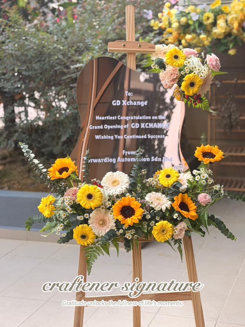 A premium standing floral arrangement paired with a custom mirror stand, designed to elevate grand openings and corporate celebrations.