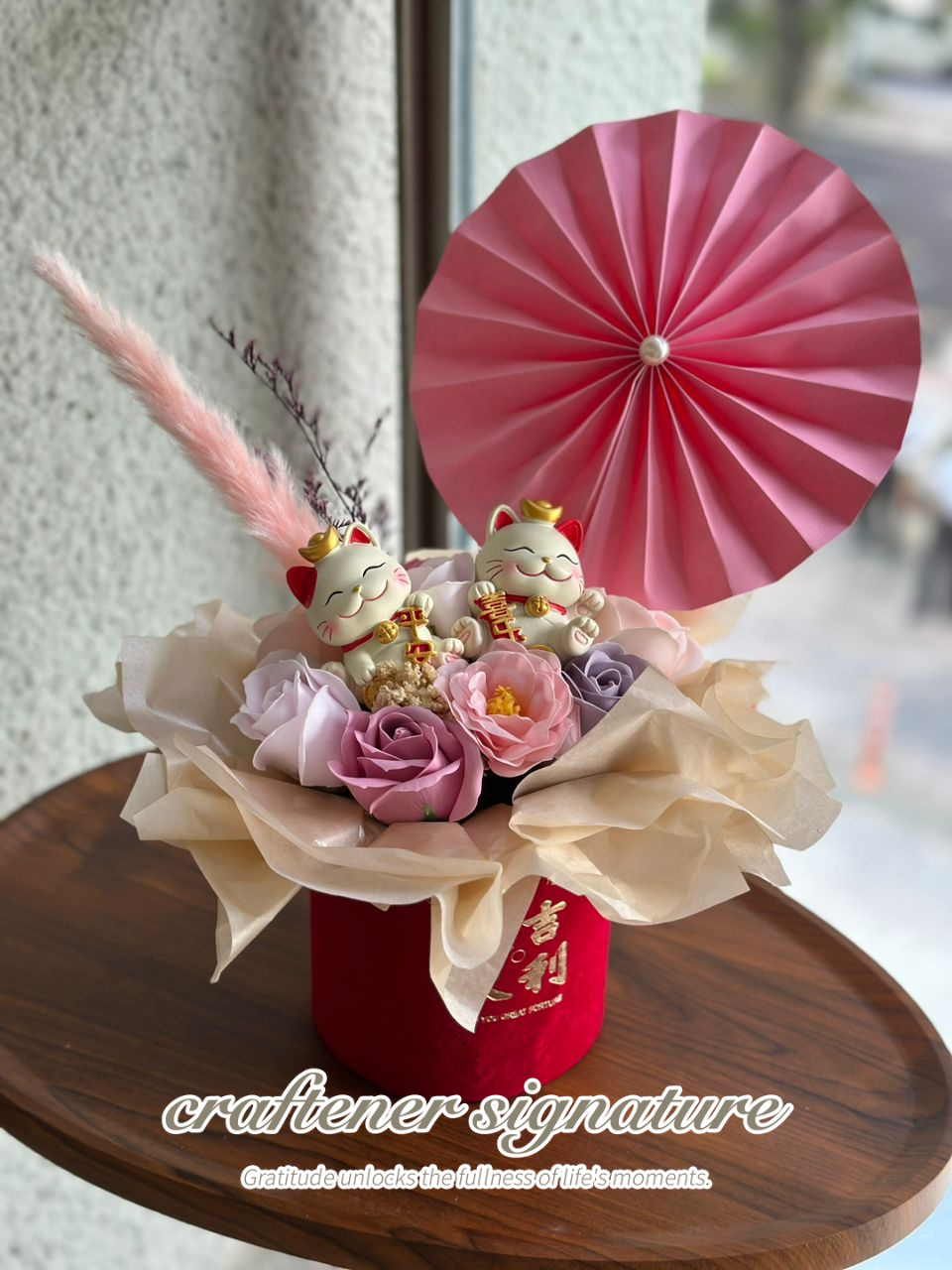 Double blessings! I present you with this soap flower basket, symbolizing beauty and longevity. May your business thrive like these flowers, bringing you prosperity and happiness.